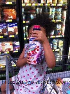 Ms. Middle and I went shopping. She picked out the Vanilla flavor. I decided that we needed more variety, so I grabbed a Blueberry and Strawberry smoothie as well. We went home and put them in the fridge right away. She was SO excited to try it with dinner.